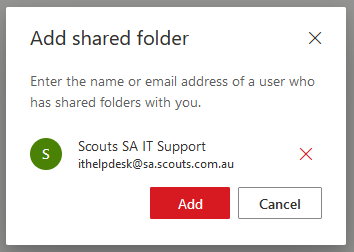 Scroll down to "Add shared mailbox or folder".