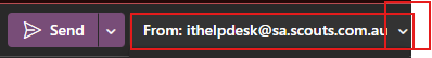 - Start the new email or reply to the email by clicking the drop-down button that has your email add next to " Send".