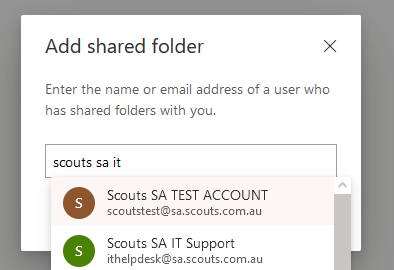 Type the name of the shared mailbox and click "Add".