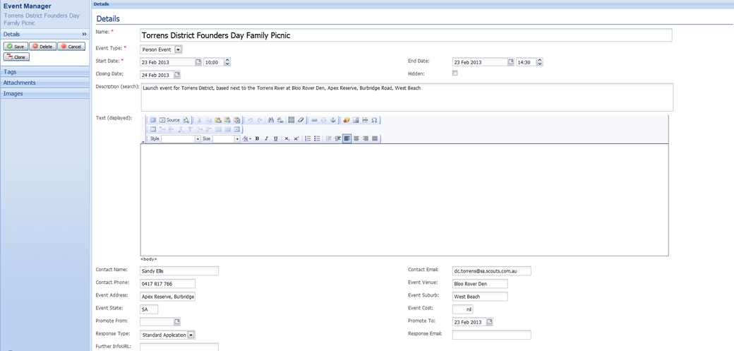 about an event (after clicking edit details).