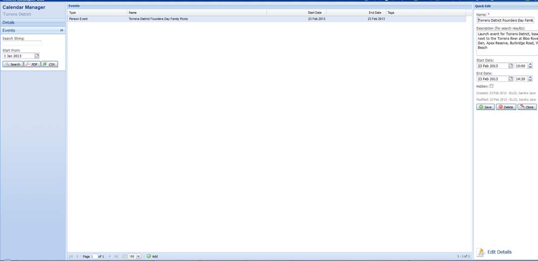 the Calendar Admin option from the menu and choose the relevant calendar,