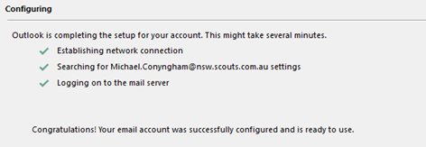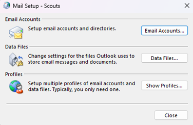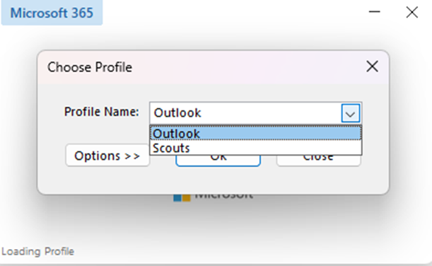 Select the relevant profile (select 'Scouts' if you labelled it Scouts in the steps above) and then 'OK' and your email will start.