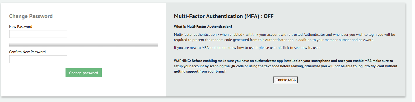 The most secure way to achieve this is through the use of your Scouts SA email address and logging in via this authentication method.