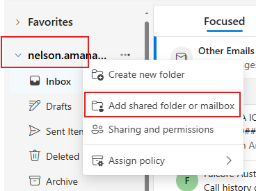 Similarly, you can remove the shared mailbox by right-clicking on the shared mailbox and selecting " Remove shared folder".